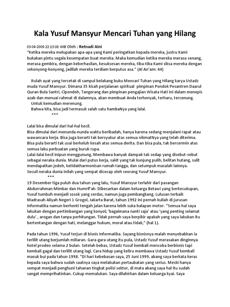 Yusuf Mansur Pdf Document from demo.fdokumen.com Check spelling or type a new query. Maybe you would like to learn more about one of these? We did not find results for: